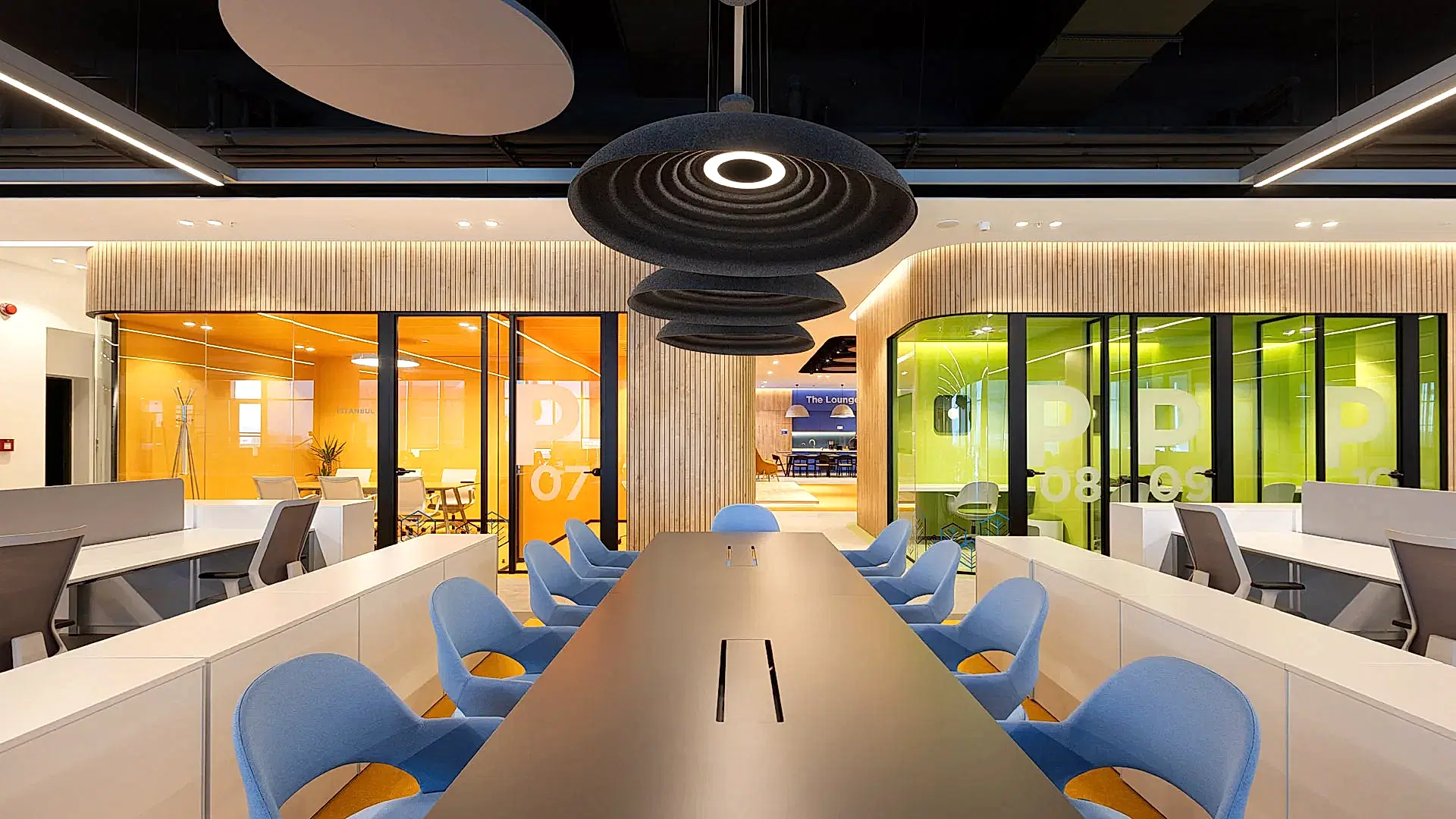 Projemizde toplantı odaları, telefon kabinleri ve çeşitli büyüklüklerde odaklanma odaları gibi çok işlevli alanlar oluşturduk. Her bir alan çalışanların ihtiyaçlarını karşılayacak şekilde tasarladık. Üretkenliği artırdık. Bu çok işlevli alanlar, beyin fırtınası, iş birliği ve odaklanmış çalışma için dinamik merkezler olarak kullanılabiliyor.